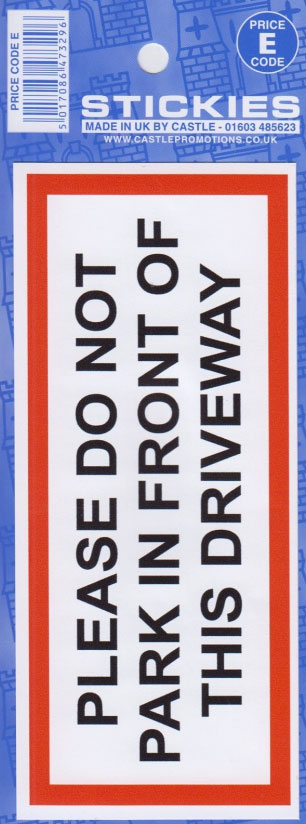 CASTLE DO NOT PARK IN FRONT DRIVEWAY STICKER