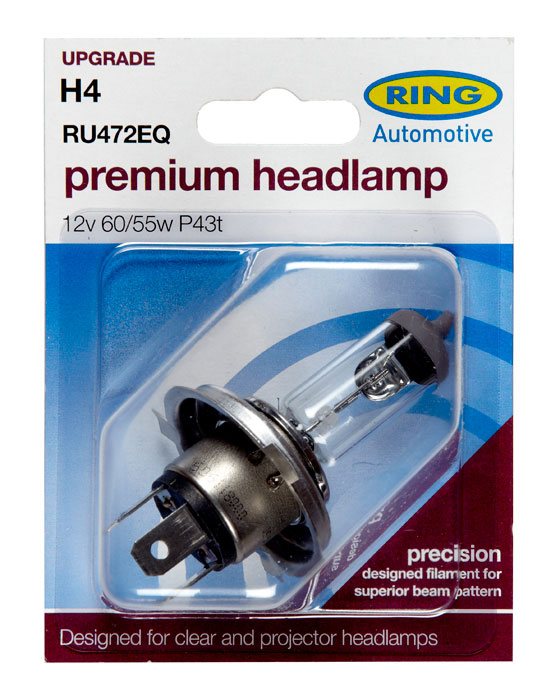 RING R472EQ 12V 60/55W H4 PREMIUM HEADLAMP BULBSSINGLETWIN PACK